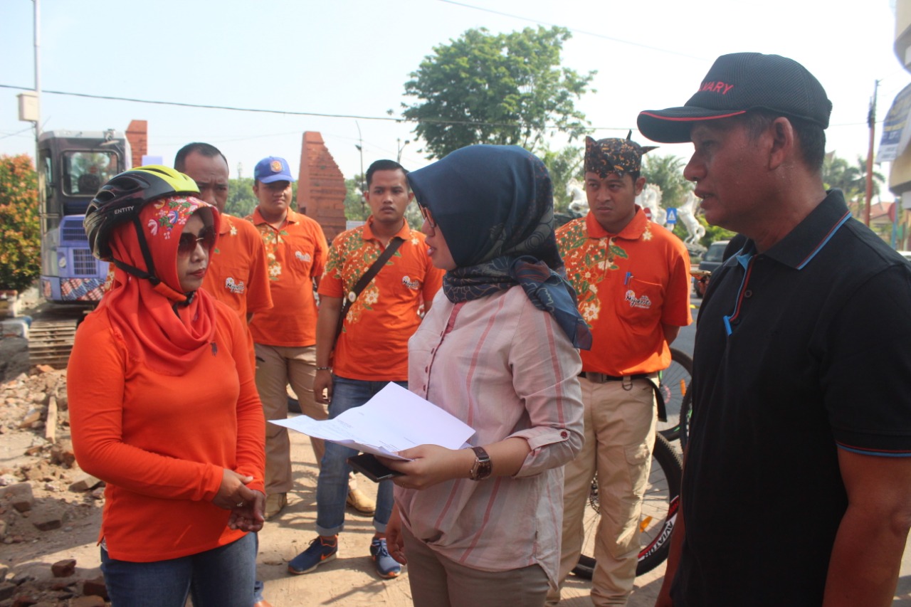 Mojokerto – Wali Kota Mojokerto Ika Puspitasari, meninjau lokasi pengerjaan saluran air di Jalan Majapahit, Jumat (25/10) pagi. Peninjauan ini, tidak lain untuk mengantisipasi adanya genangan yang sering datang saat musim hujan di Kota Mojokerto.
