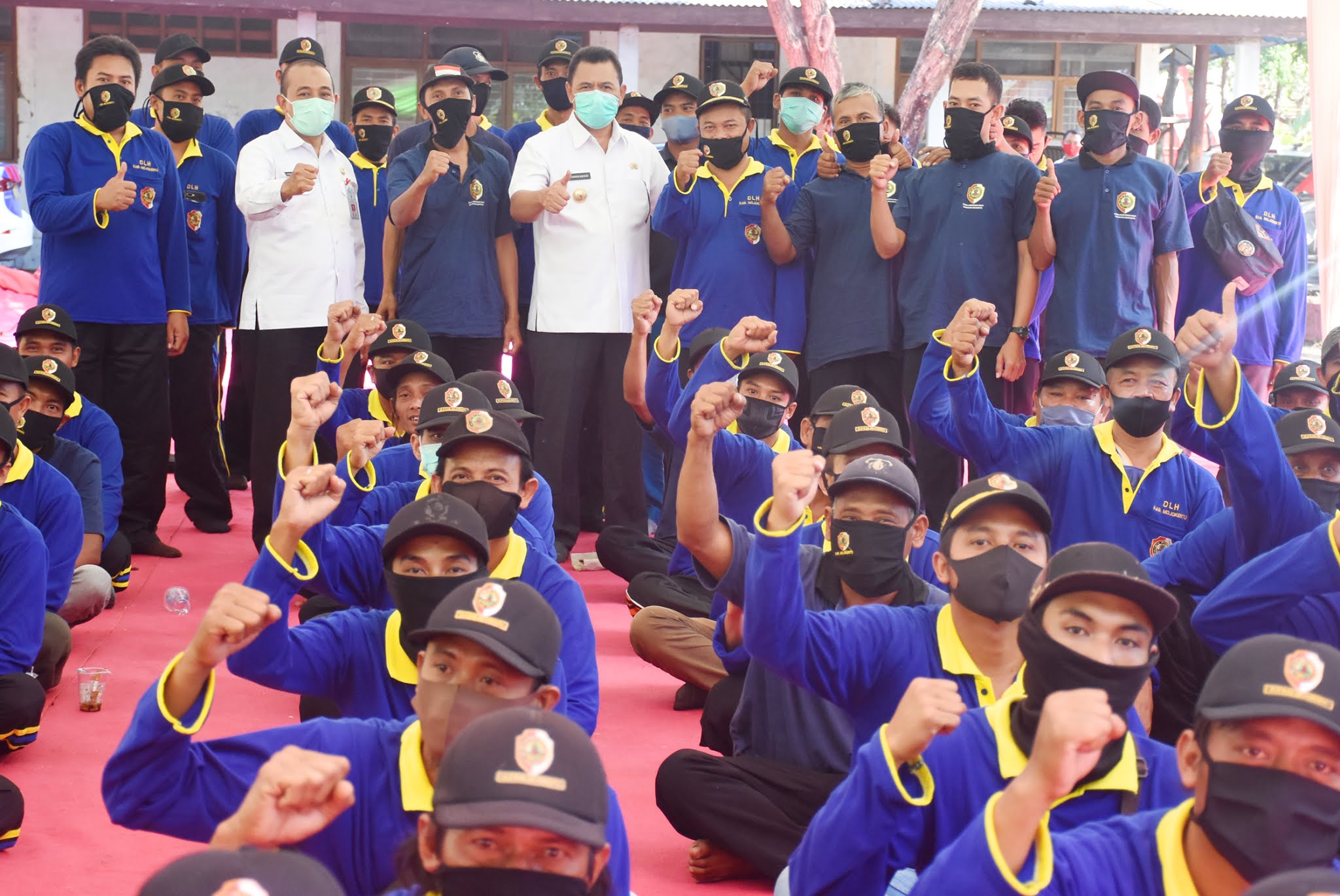 Mojokerto Pos- Bupati Mojokerto Pungkasiadi, mengajak petugas kebersihan untuk bekerja lebih hati-hati dengan terus memperhatikan Perilaku Hidup Bersih dan Sehat (PHBS) serta protokol kesehatan pencegahan Covid-19. Hal ini mengingat produksi sampah medis khususnya, akan terus meningkat sejak munculnya pandemi awal Maret lalu hingga saat ini. Wejangan ini disampaikan kepada 300 orang petugas kebersihan dan pertamanan Dinas Lingkungan Hidup (DLH) Kabupaten Mojokerto, Rabu (12/8).
