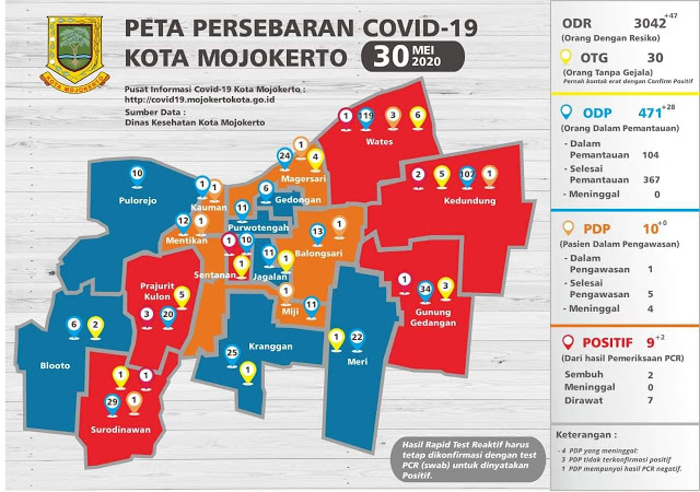 Dengan bertambahnya 2 kasus baru, kini jumlah pasien positif Covid-19 di Kota Mojokerto menjadi 9 orang.