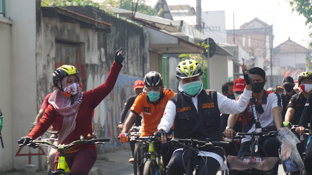 Bersepeda bareng atau gowes mengelilingi daerah yang berjuluk Kota Onde-onde di Minggu (30/8), dilakukan keduanya bersama seluruh jajaran di pemerintah provinsi dan pemerintah kota. Tak lupa, disela-sela bersepeda keduanya juga mengampanyekan protokol kesehatan sambil berbagi masker kepada masyarakat.