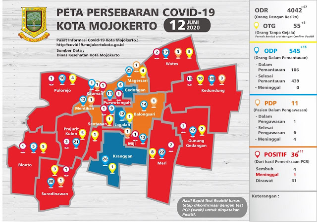 Juru Bicara Gugus Tugas Covid-19 Kota Mojokerto Gaguk Tri Prasetyo mengatakan, penambahan pasien covid-19 di Kota Mojokerto mengalami lonjakan yang sangat besar di hari ini yakni 11 pasien.”Jadi total sekarang yang terkonfirm Positif ada 36 pasien yang terdiri dari berbagai elemen lapisan masyarakat,” jelasnya.