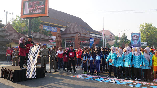 Mojokerto – majalahmojokertopos.com : Wali Kota Mojokerto Ika Puspitasari, memberangkatkan peserta Jalan Sehat dan Gerak Jalan Pelajar 2019 dalam rangka memperingati Hari Kemerdekaan ke – 74 dan Hari Olahraga Nasional, Sabtu (14/9) pagi. Kegiatan ini diikuti oleh 170 regu dari pelajar SD, MI, SMP, MTS serta SMA, MA dan SMK se-Kota Mojokerto dengan total 2890 peserta.