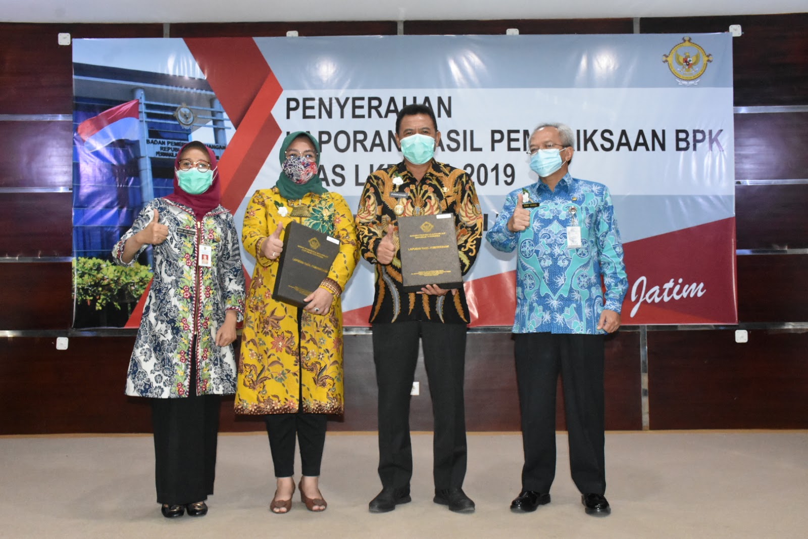 Pemerintah Kabupaten Mojokerto kembali mempertahankan opini Wajar Tanpa Pengecualian (WTP) atas Laporan Keuangan Pemerintah Daerah (LKPD) Tahun Anggaran 2019, Selasa (30/6) siang di Gedung Badan Pemeriksa Keuangan (BPK) Perwakilan Provinsi Jawa Timur, Sidoarjo. Penghargaan diserahkan Kepala BPK Perwakilan Provinsi Jawa Timur Joko Agus Setyono, pada Bupati Mojokerto Pungkasiadi didampingi Ketua DPRD Kabupaten Mojokerto Ayni Zuroh.