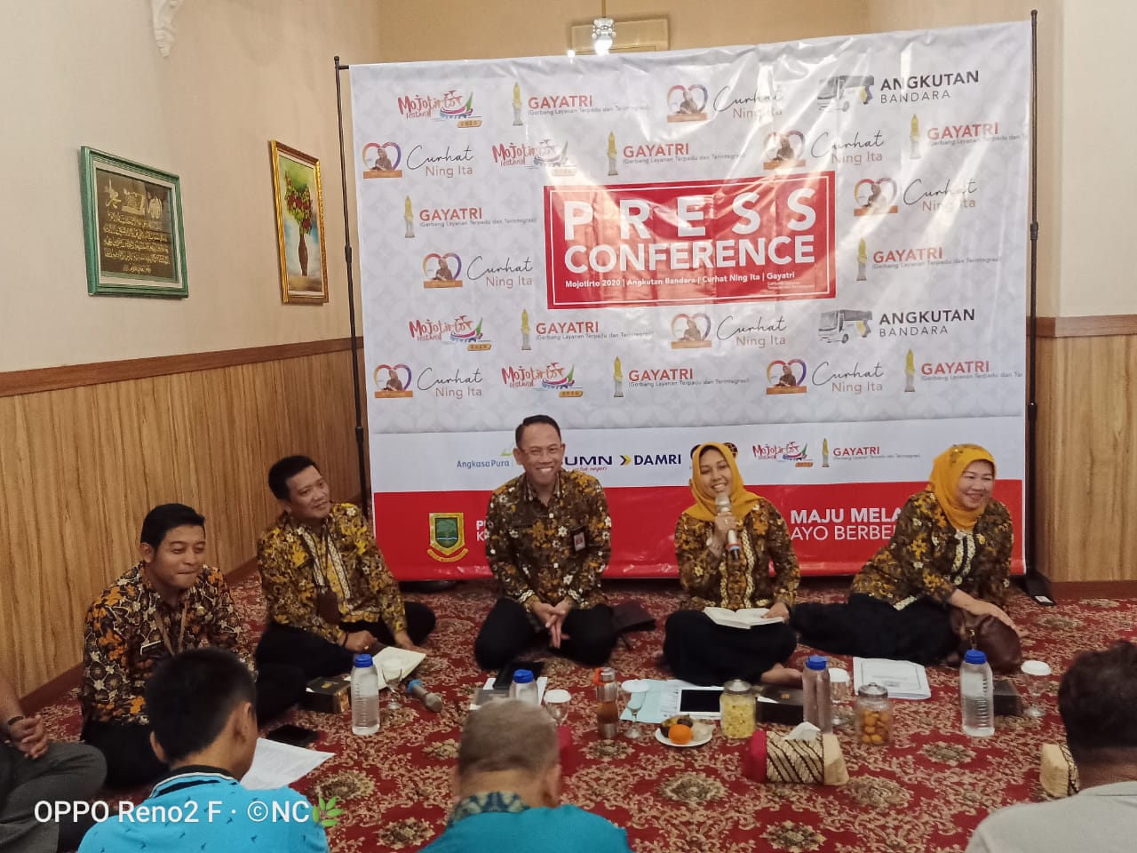 Mojokerto – majalahmojokertopos.com : Pemerintah Kota Mojokerto menggelar press conference Festival Mojotirto 2020, Launching Angkutan Bandara, Launching Aplikasi Curhat Ning Ita dan Launching Aplikasi Gerbang Layanan Terpadu dan Terintegrasi (GAYATRI), Kamis (12/3/2020) di Rumah Rakyat, Jalan Hayam Wuruk No.50 Kota Mojokerto.