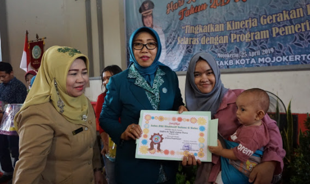 Sertifikat Lulus ASI Eksklusif diberikan oleh Ketua TP PKK Kota Mojokerto kepada Naga Ar Raffi anak dari Sifana Puspitasari anak , Carla Reskita Otavi anak dari Widya Novianti, dan Arrijalu Maulana anak dari Dwinie Maharanie dengan didampingi oleh Kepala Dinas Kesehatan Kota Mojokerto. (Tik)