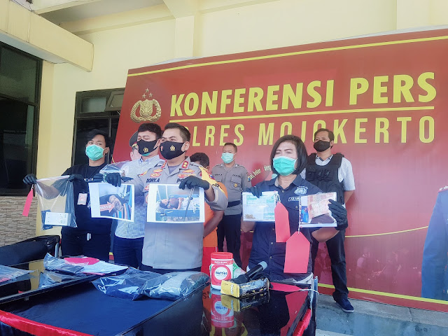 Kapolres Mojokerto AKBP Dony Alexander dalam konferensi persnya mengatakan bahwa tersangka ini telah menggambar target lokasi 2 minggu sebelum perampokan untuk memastikan kondisi aman.