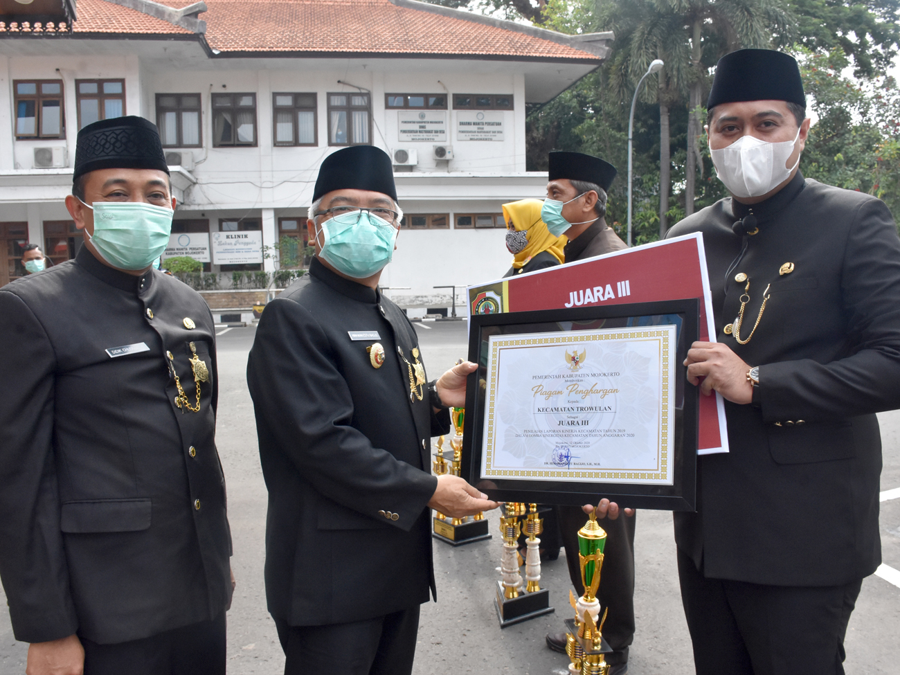 Pada upacara ini, diserahkan penghargaan Lomba Sinergitas Kecamatan Tahun 2020, atas laporan kinerja kecamatan tahun 2019. Adapun kecamatan peraih penghargaan antara lain Kecamatan Puri dengan nilai 93,75 sebagai juara I, Kecamatan Gedeg dengan nilai 85,25 sebagai juara II, dan Kecamatan Trowulan dengan nilai 80,25 sebagai juara III. Penghargaan yang ditetapkan berdasarkan Keputusan Bupati Mojokerto Nomor 188.45/362/HK/416-012/2020, diserahkan langsung oleh Pjs Bupati Mojokerto Himawan Estu Bagijo pada masing-masing camat.
