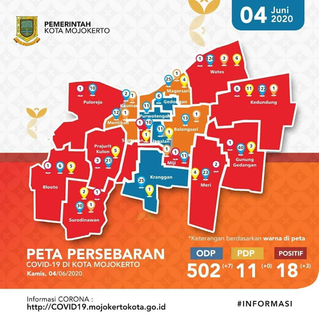 Untuk diketahui, data Gugus Tugas Covid-19 Kota Mojokerto menunjukkan jika Per 4 Juni 2020, jumlah total pasien terkonfirmasi positif Covid-19 ada 18 pasien. Dengan rincian, 15 pasien masih dalam perawatan, 2 pasien telah dinyatakan sembuh dan 1 pasien meninggal dunia.